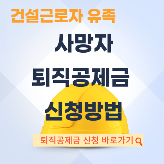 건설근로자 유족의 경우 유족이 퇴직공제금을 신청하여 수령하실 수 있습니다. 건설근로자 사망자 퇴직공제금 신청 대상과 신청시 필요한 서류, 신청 방법 등에 대해서 상세히 안내해 드릴테니 아래 내용 확인하시고, 꼭 신청하시기 바랍니다.