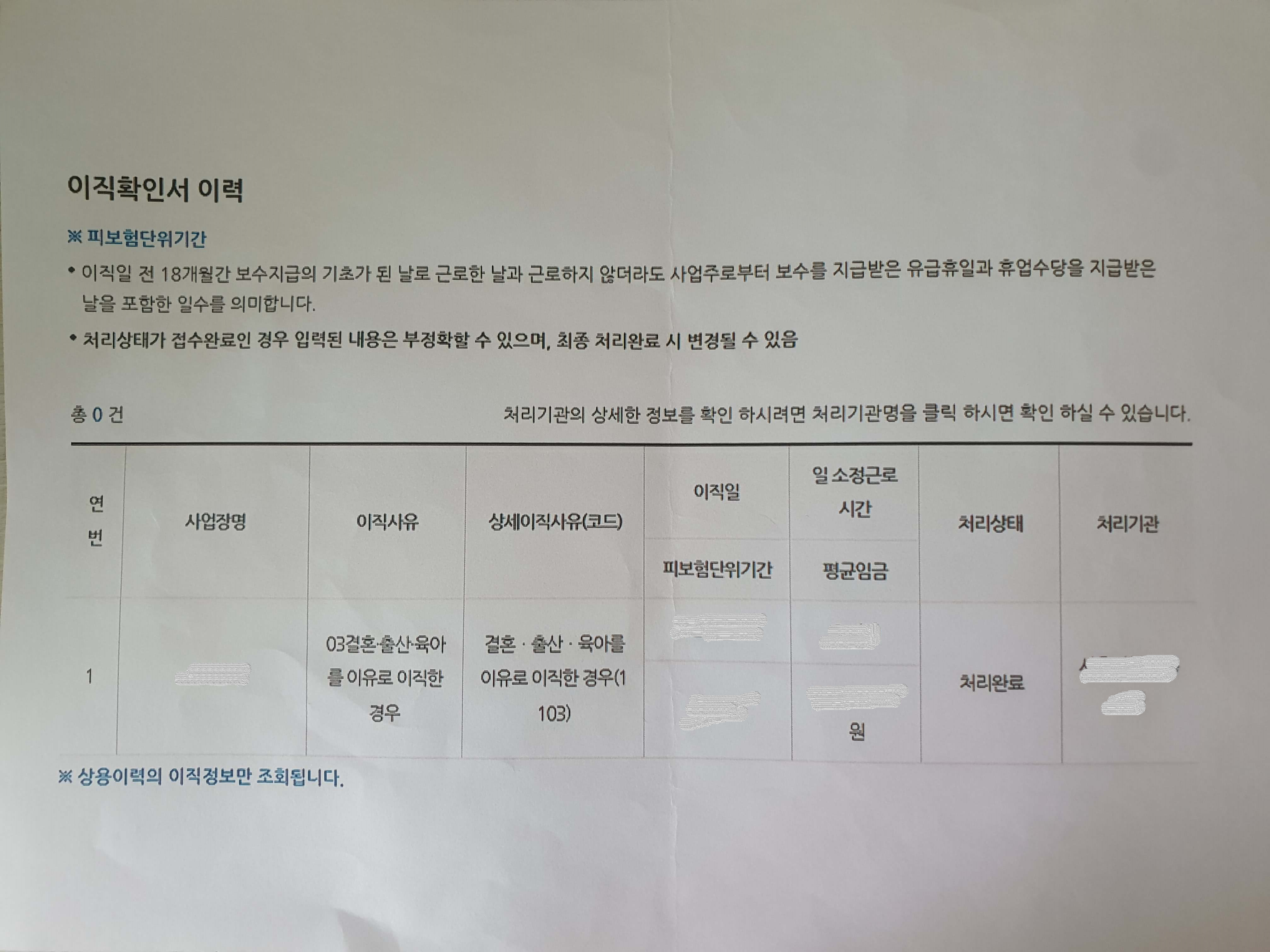 ☞ 회사측에서 상실신고서, 이직신고서, 육아로 인한 퇴사 확인서(사업주용) 처리를 해주어야 하니 퇴사 전 미리 담당자에게 잘 얘기해 두시는 것이 좋습니다.