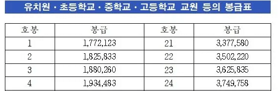 ☑️유치원, 초. 중. 고등학교 교원 봉급표